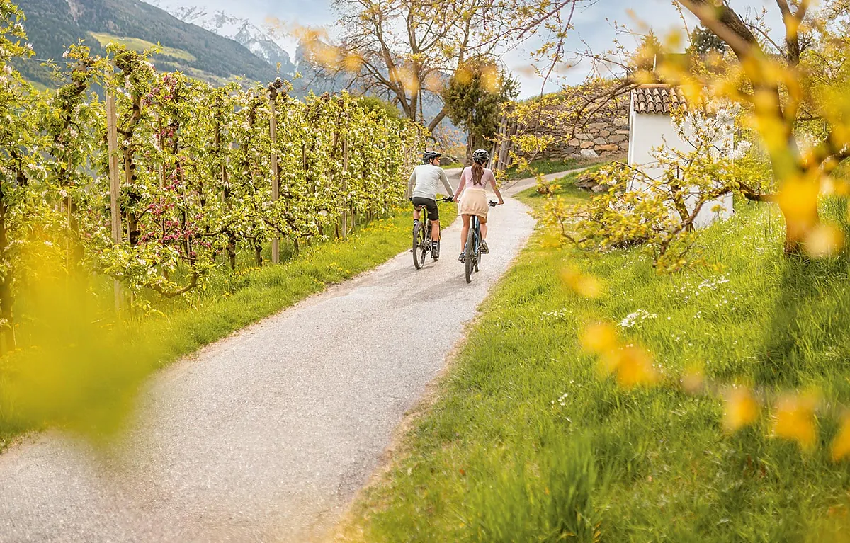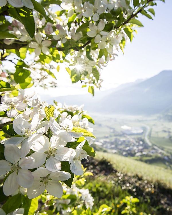 Im Frühling kannst du die Vielfalt am besten spüren, Wandern am Sonnenberg, die Apfelblüte im Tal, in Sulden kannst du noch perfekten Schnee bis Ende Mai genießen.