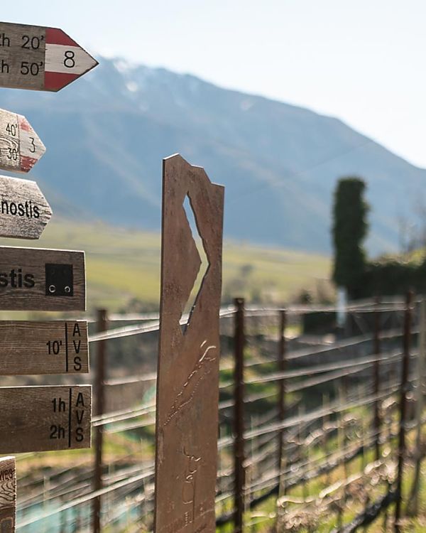 Der Winter hüllt die Berge mit Schnee, aber der Vinschgauer Sonnenberg bleibt meist schneefrei, schöne Wanderungen entlang den Waalwegen sind auch im Winter möglich.